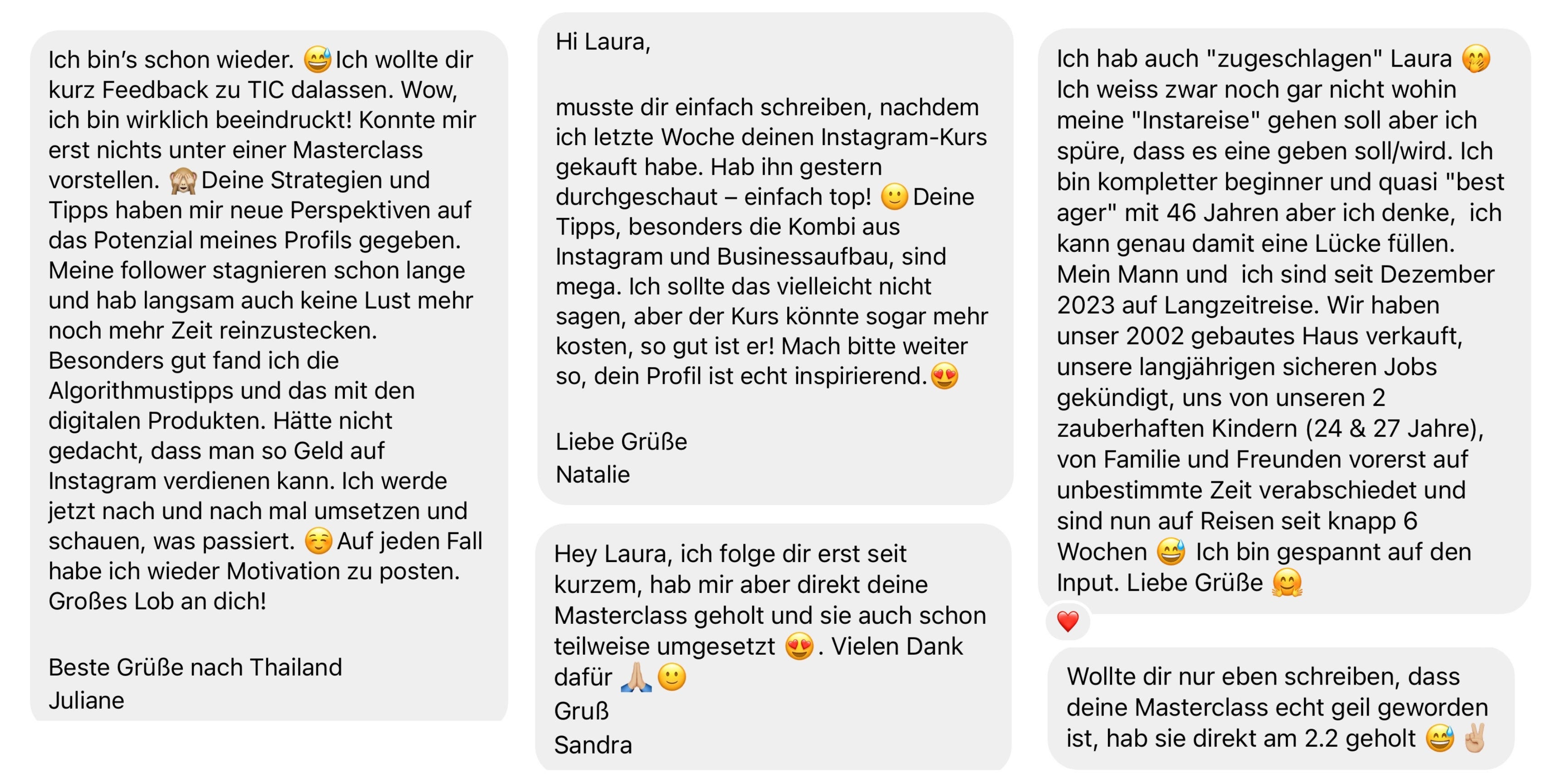 Ich bin von Laura so begeistert, dass ich gleich noch den Instagram Code Kurs und eine Session für das Human Design gebucht habe, um so schnell wie möglich vorwärts zu kommen. Ich freue mich auf das, was alles auf mich zukommen wird und bin total zuversichtlich dass wir damit erfolgreich sein werden!